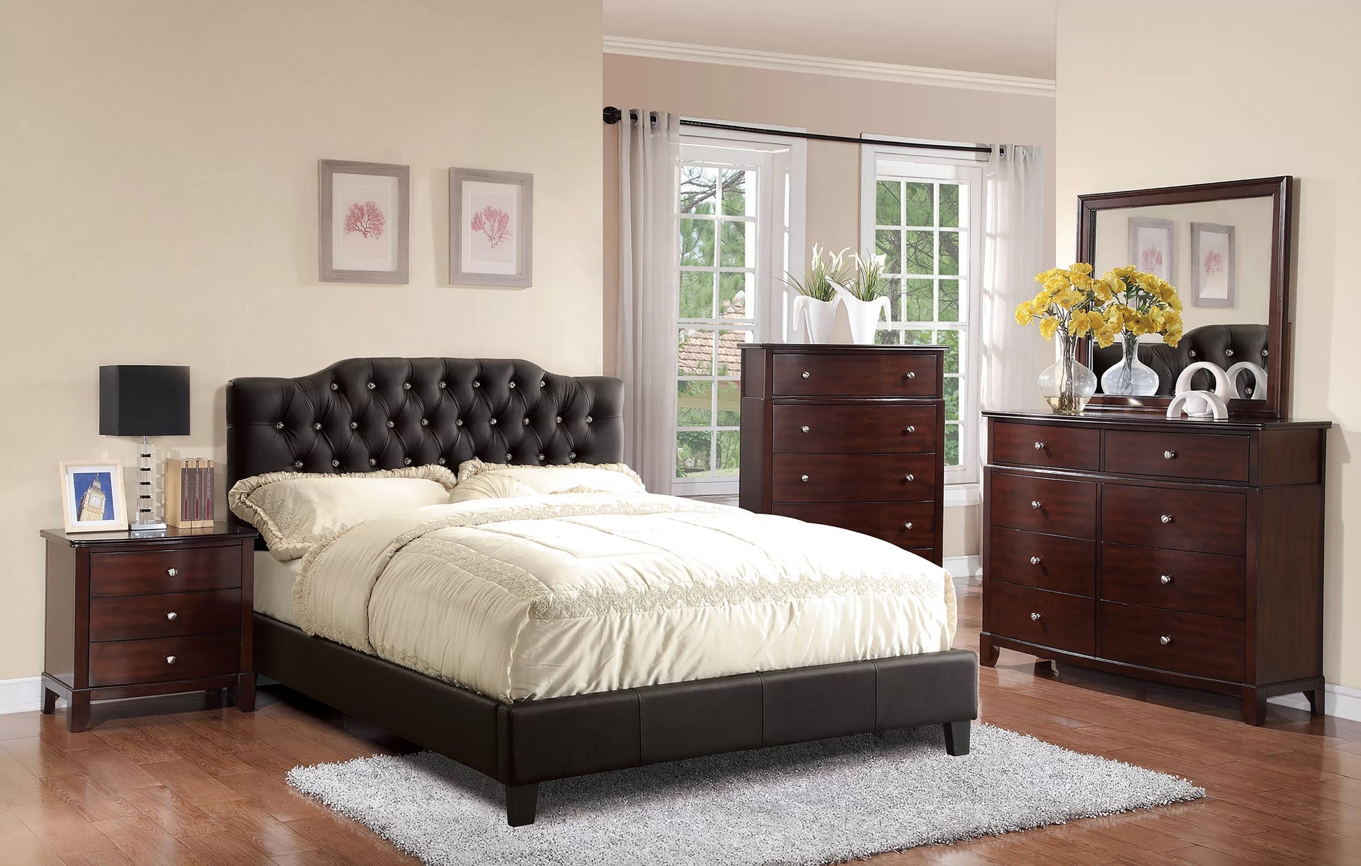 Beige, Grey, Black Leather Full Bed